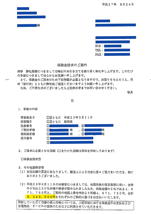 保険会社との電話のやり取りや保険会社側の調査員による鑑定立ち合いをお願いいたします。
